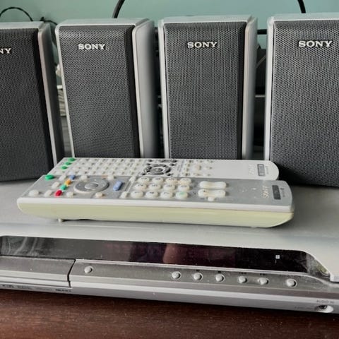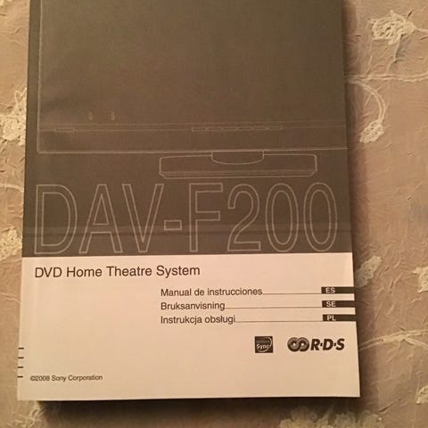 Anlegget ble kjøpt som et sett, og består av Sony DAV-F200 DVD Home Theatre System, to høyttalere og Sony SA-WSF200 subwoofer.