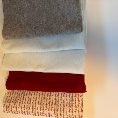 Klipp og sy adventskalender med katter. "Christmas cats advent calendar" designet av Fabric freedom i London, England. Den har en lomme til hver dag. Kalenderen er 57 cm høy og 51 cm bred, lommene er 10,5 cm høye. Stoffbiten er 60x113 cm.