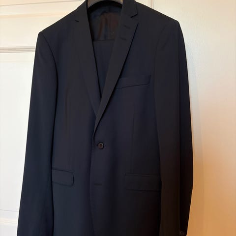 Flott mørkeblå dress med jakke, vest og bukse. Merke Selected. Str 46. Ikke brukt mange ganger.