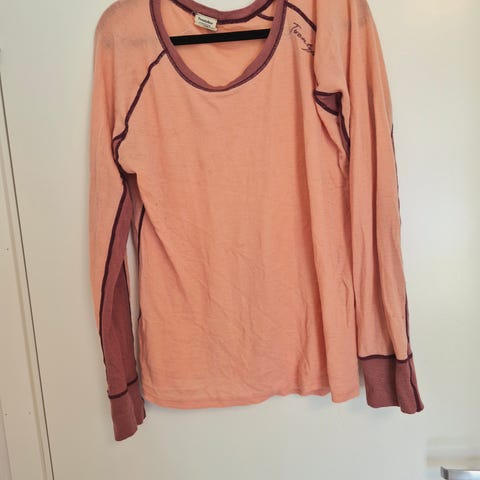 Luftig og lang treningstopp fra Athleta California i fin farge og med kule detaljer. Selv har jeg aldri brukt strikken i siden, men kul detalj. Toppen er lang både i kroppen og i ermene. Kan fint brukes av de som bruker L også. Den er noe nuppete, derfor selges den billig.