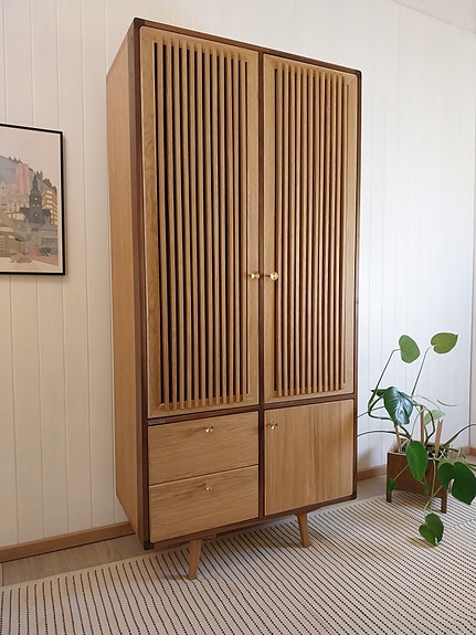 Dette er et unikt møbel laget uten bruk av CNC – alt er skåret, pusset og tilpasset for hånd. Perfekt for deg som ønsker noe mer enn masseproduserte løsninger.