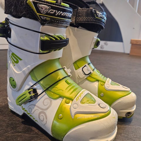 Godt brukte dynafit randonee sko. Skoene er lette i vekt og gode å gå med oppover. Svært enkelt å skifte fra gåmodus til kjøremodus.