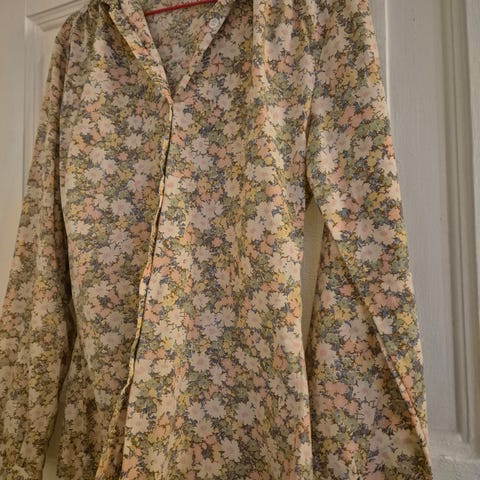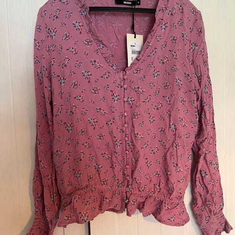 Fin sort bluse med rosa blomster. Aldri brukt.
