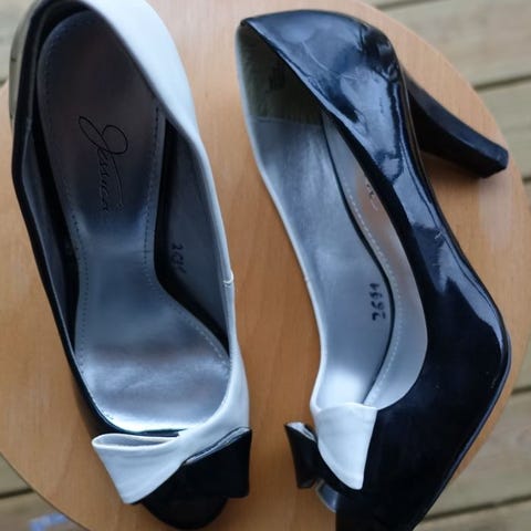 Skoene er ubrukt , har to bitte små hull da prislappen var. Kjøpt ikke ny selv . De er ikke i ekte skinn . Oppleves som str,37 . Selges med tungt hjerte siden det passer dessverre ikke .