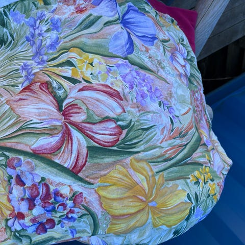 Vasket spesiel Jersey, nydelig trykk. 95× 140 cm. Hvite kanten er ikke tatt med i mål. 150 kr