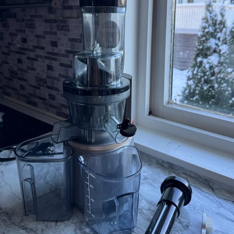 Selger en veldig lite bruke juice maskin. Det er en slow juicer som gjør at næringsstoffene beholdes bedre i juicen enn en vanlig juicemaskin. Den kan juice frukt, grønnsaker og alle mulige grønne blader. Juicer f.eks stangselleri uten problemer. Kan også lage pasta.