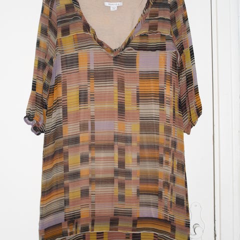 Kjole fra Sorbet. Knelang. Puffermer. Strikk i livet bak. 100 % viskose. Nypris kr 1199. Kjøpt i mars 25 og brukt to ganger. Vaskes på silke/finprogram.