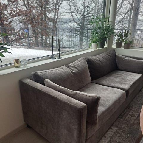Den ble kjøpt ny på Sofa Company i Kristiansand etter sommeren 2023. Ny pris var 28500 + impregneringsspray.