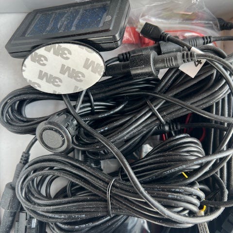 Følger med alt av kabler og antenner.