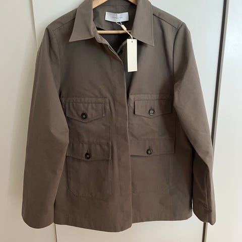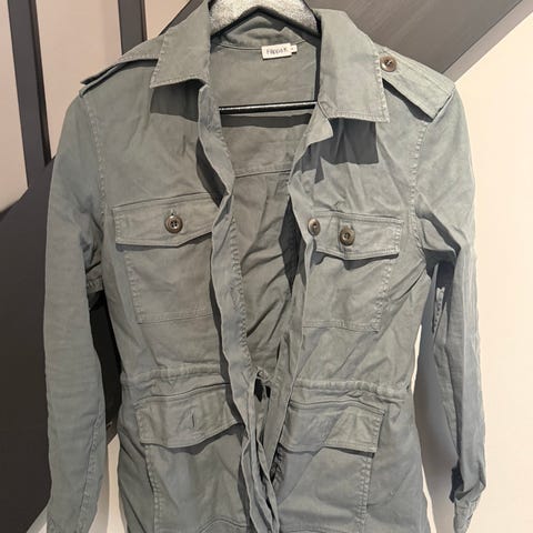 Meget pent brukt jakke fra Filippa K med justerbar strikk i livet i lys khaki-grønn.