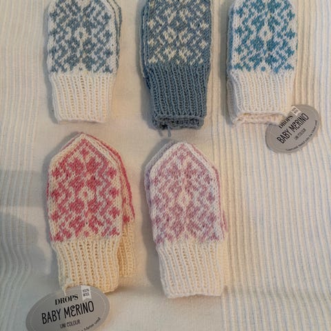 Strikka babyvotter str 0-12 mnd