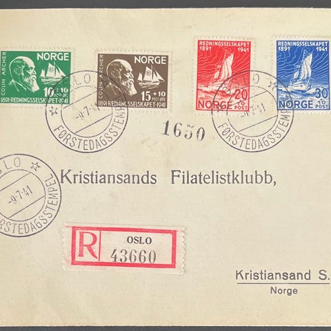 Konvolutt med de to merkene NK 307 og 308 stemplet 6.10.1942.