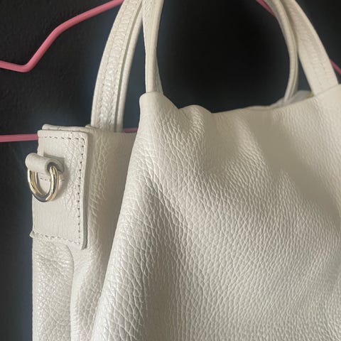 Vesken er laget av mykt skinn med metallfarge av antikk gull.