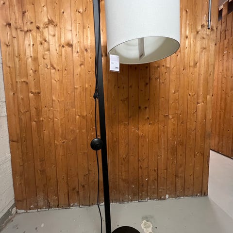 Pen oval lampeskjerm i lys lin stoff følger med.