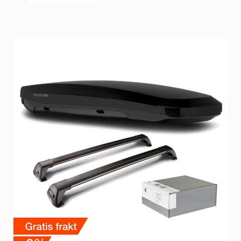 Takboks skiboks, som ny. 2023. Black glossy. Pent holdt. Det medfølger 2 stk. Thule wingbar. Glassfiberbokser fra øverste hylle! Ekstremt solid og robust konstruksjon med doble sidevegger i bunn og lokk. Svært brukervennlig åpne‐ & lukkemekanisme uten nødvendig bruk av nøkkel. Lagret innendørs. Nyvasket og ren.