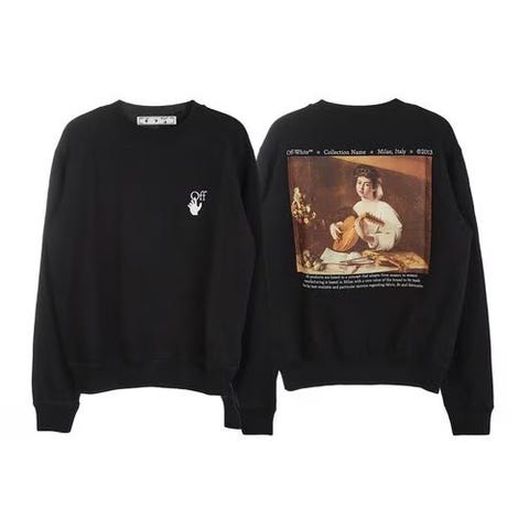 Selger en stilig og ikonisk Off-White T-skjorte med Caravaggio-print. Brukt kun et par ganger, og er i svært god stand – ingen flekker eller skader