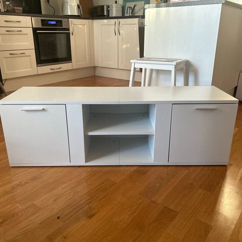 Som ny TV-benk. Praktisk med tre hyller. Vi har en 65" på benken i dag.
