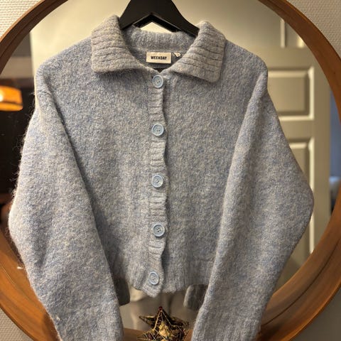 Nydelig, lyseblå cardigan fra Donna. Myk og god å ha på, litt romslig i passformen, passer fint en xs til m, avhengig av hvor løst du vil den skal sitte. 🦋 perfekt til kjølige sommerkvelder eller til høsten.