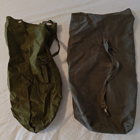 Stor og flott militærbag, lite brukt. Har kun vært brukt til å oppbevare klær i hjemme, har ikke vært med på noen militærøvelser!