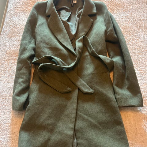 Grå, halvlang kåpe fra H&M. Den er kun brukt et par ganger, så er som ny.