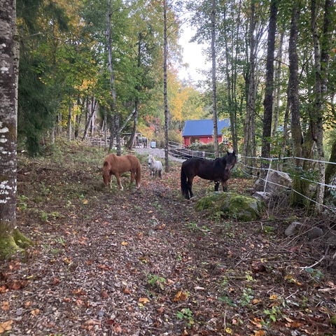 Totalt ca. 16daa med solide gjerder, mulighet for naturlig skygge og le, vanndunk med bøtte, skjermet for vei og trafikk og daglig tilsyn!