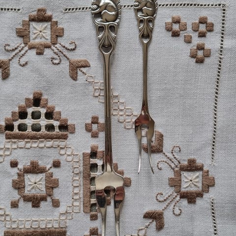 Telesølv, smørgaffel og koldtgaffel