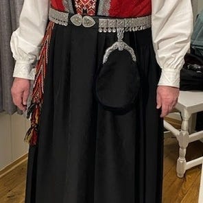 Med denne følger det også en skjorte, kyse, veske, 3 par sko (str.39 & 40) og sølv.