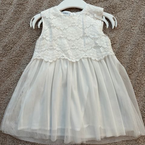 Elegant og søt hvit kjole i størrelse 74 – perfekt til dåp, bursdag, bryllup eller andre festlige anledninger. Myk og behagelig mot huden, med fine detaljer.