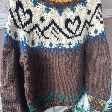Helt ny håndstrikket genser, lett, myk og varm. Strikket i Alpakka Maya. Passer til størrelse M-L.
