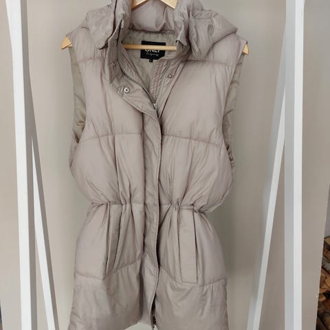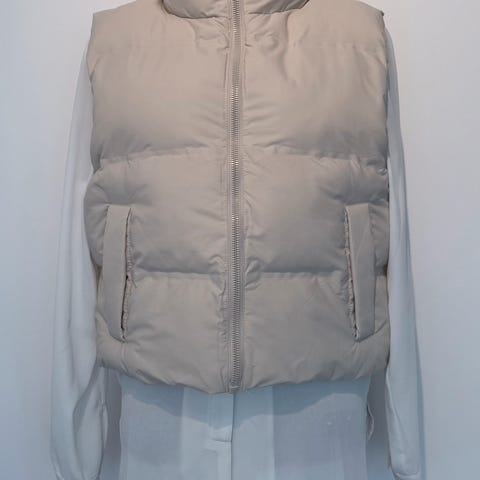Selger en boblevest fra ONLY i str S. Modell Sydney Padded Waistcoat i fargen Humus / lys beige. Pent brukt med få bruksmerker. Se bilder for nærmere detaljer.