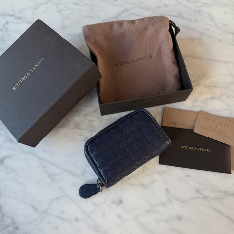 Kortholder fra Bottega Veneta i mørk grå. Boks og kvittering følger med.