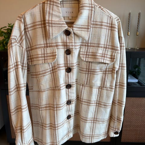 Fint brukt skjortejakke, foret fra Vila - modell VILA Petite VIRUBI CHECK JACKET i fargen birch/black.