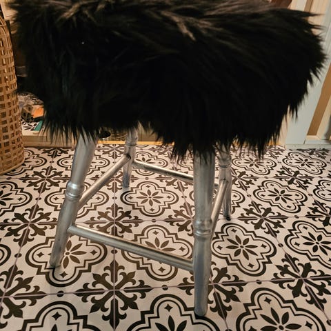 GI BUD! Kule 4 stk rustikk metall stoler med skinn.