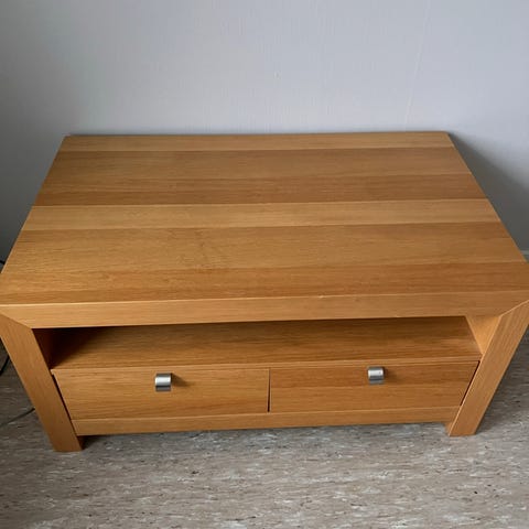 Vi fikk denne tv benken når vi tok over huset vårt. Den er helt hel og ser fin ut. Passer ikke helt inn hos oss, gis derfor bort.
