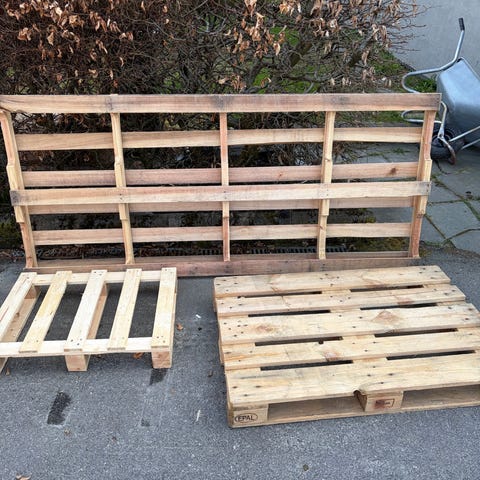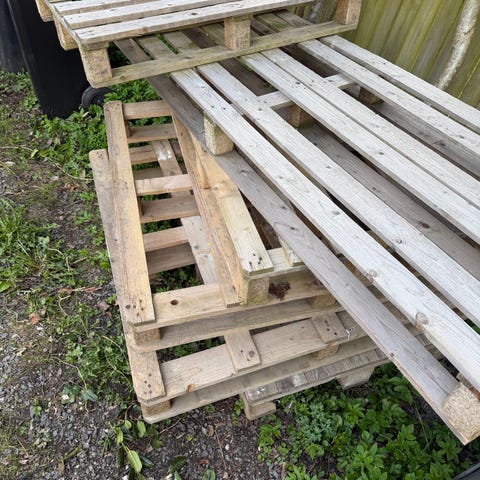 Beholderene har stått ute i lang tid og pallene under er dårlig kvalitet, se bilder.