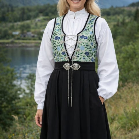 Grønn Sonja festdrakt med skjorte str 176 S