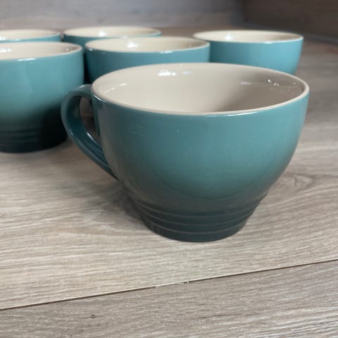 Selger 8 jumbokopper, 4 sorte og 4 creme. De fleste er knapt brukt men har litt skraper i bunn. Det er 6 sorte på bildet men to av disse er solgt.