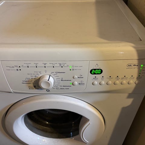 Den har egne programmer for bomull, syntetisk, ull og håndvask og et hurtigprogram.
