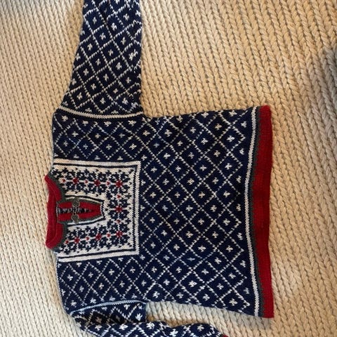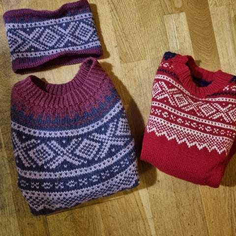 Ny Mariusgenser, strikket i Smart superwash 100 % ull. Str 2- 4 år.