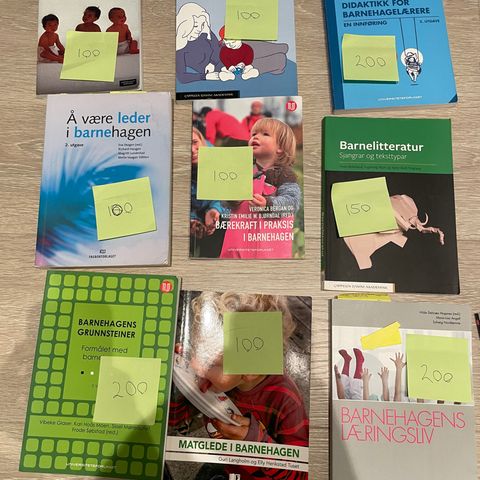 Selger en god del bøker fra 1 og 2 året på barnehagelærer utdannelsen. Alle bøkene er enten ubrukt eller veldig pent brukt så fremstår som nye.