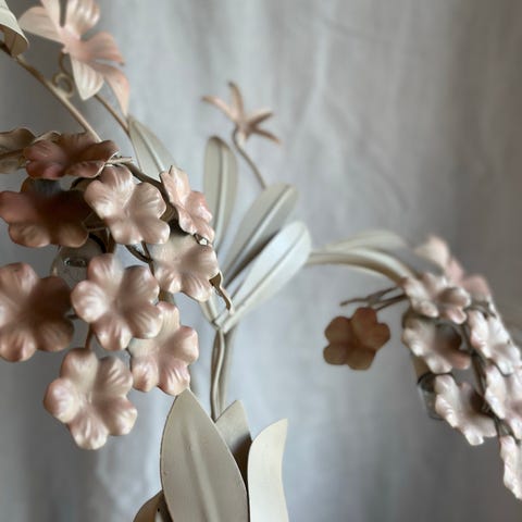 Kul retro bordlampe. Delikat dempet rosafarge med kult hvit mønster som slanger seg oppover. Lampen er i veldig god vintage stand. Lampen er stor og høy.