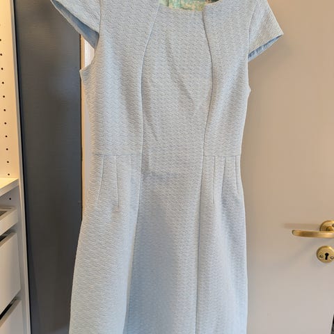 Kjolen har 2 lag, knytebelte og glidelås i ryggen.