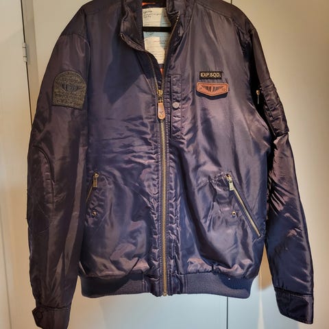 Selger en BOMBER BLU AERONAUTICA MILITARE i str :L en meget robust samt varm jakke Aeronautica er kvalitets brand