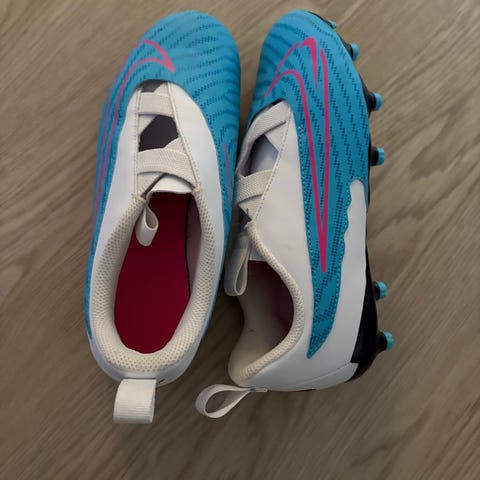 Selger disse originale Nike Phantom GX (Blå/Hvit/Rosa) fotballskoene da jeg ikke lenger bruker de. De er brukt i 2 år, men funker fortsatt som ny. Noe bruksmerker her og der, men ingenting man ikke hadde forventet etter 2 års bruk. Ingenting galt med de.