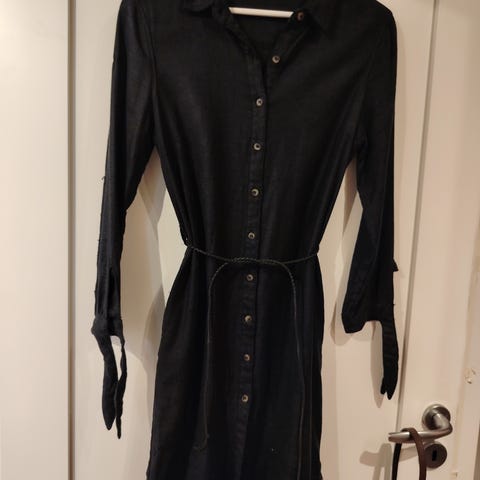 La vite kjole str 34. Veldig fin kjole på. Kjolen kan brettes opp på armen, for at den skal bli enda kortere (er en knapp).