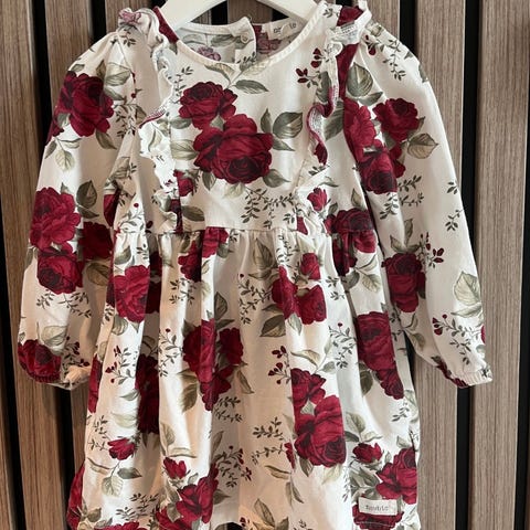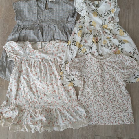 2 fine kjoler med blomster og tights som passer til begge kjolene.