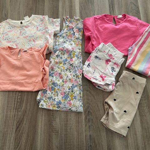 Tights, kosebukse, t-skjorte, shorts og skjørt.
