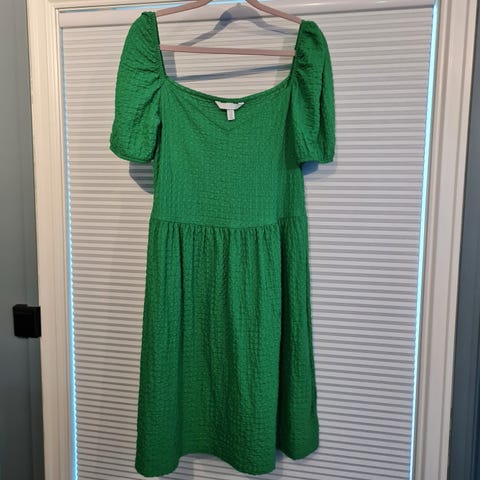 Fargen kommer dårlig fram på bildet. Kjolen er grønn.
