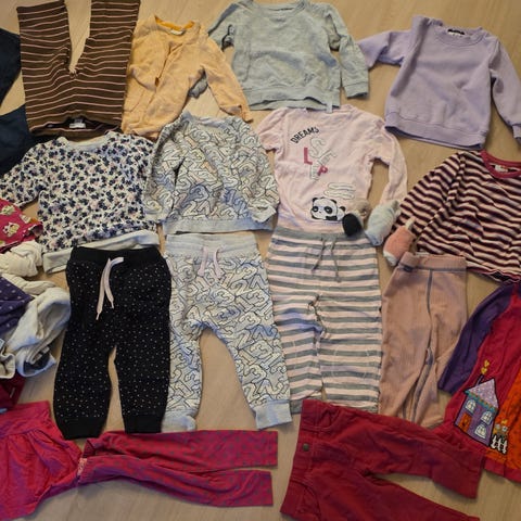 Selges samlet for 400,- som gir en snittpris på 17,4 kroner per plagg.