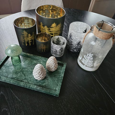 Ny vase fra Eva Solo, grønn ny lyslykt og grønn glasskrukke med duft pinner selges samlet for 500,-